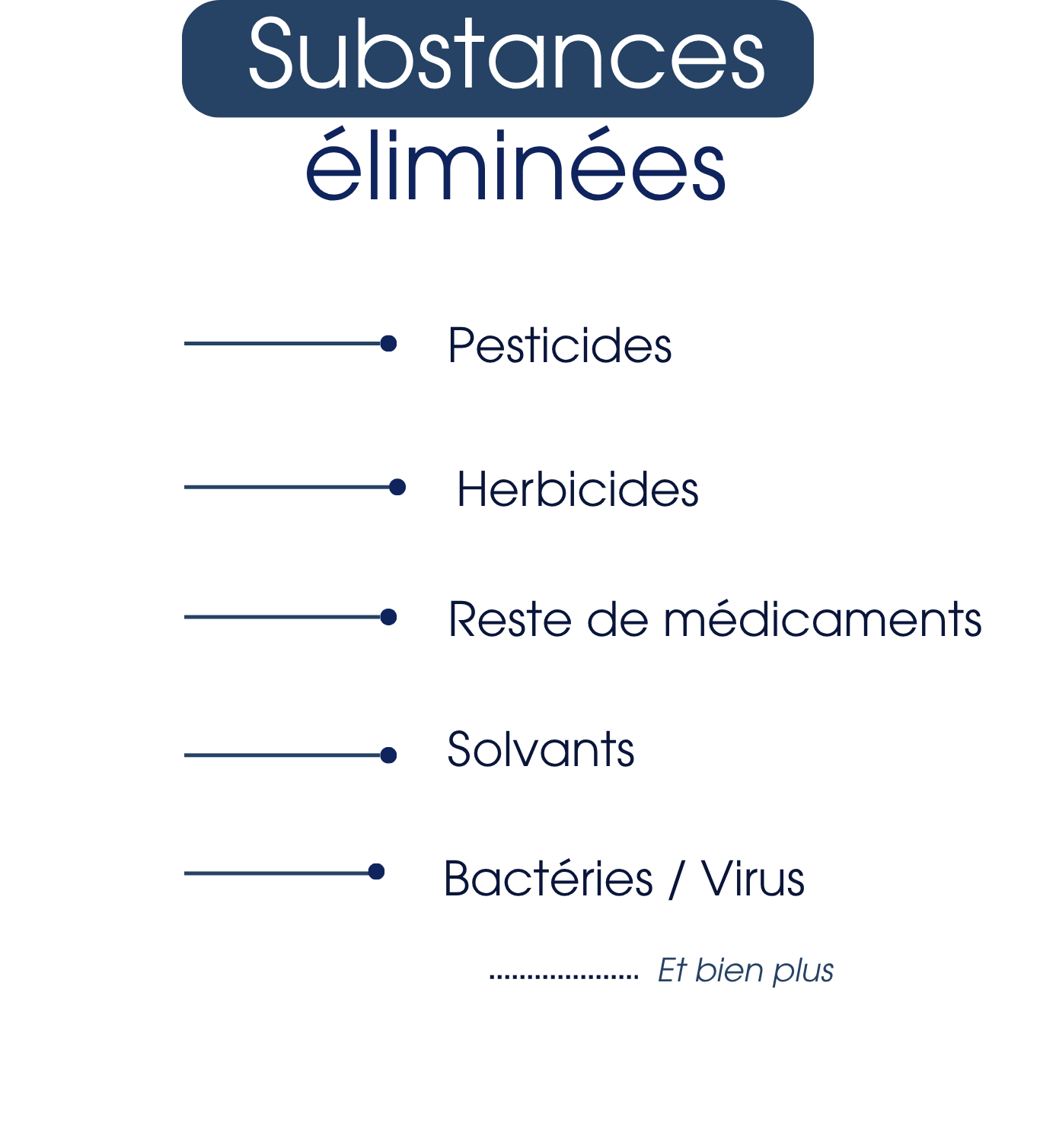 Absorbe les contaminants chimiques, les pesticides, les résidus de médicaments et améliore le goût