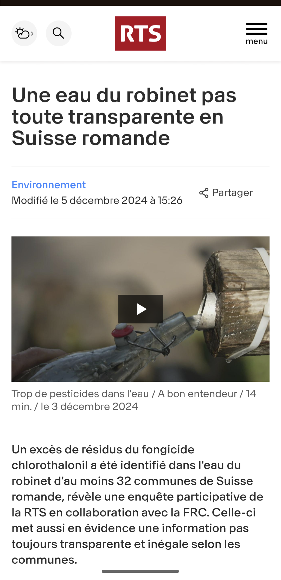 Chlore, pesticides, herbicides, reste de médicaments, bactéries, virus et bien plus (microplastiques, chloramines, parasites, solvants, sédiments, mauvaises odeurs et saveurs, ect)