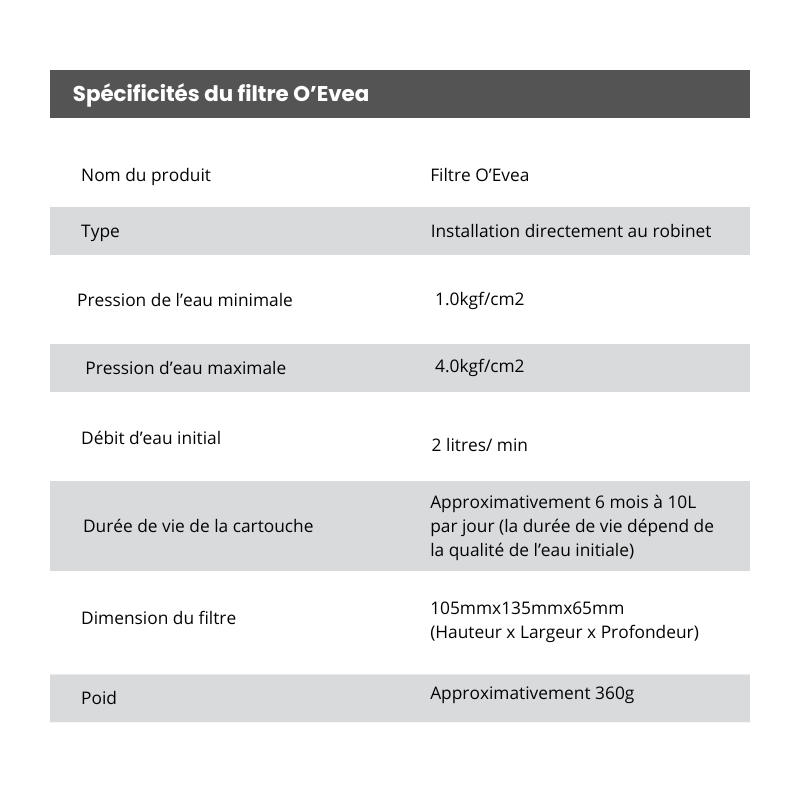 Filtre à eau O'Evea + cartouche filtrante 8 actions
